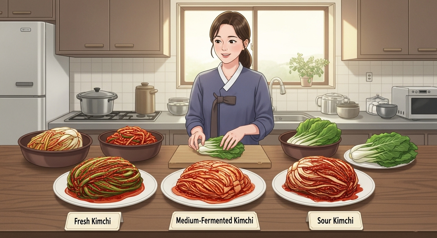 | 갓 익은 묵은지 | 아삭한 식감, 약간의 산미 | 겉절이, 두부김치, 샐러드 | 열을 가하지 않고 생으로 활용 |